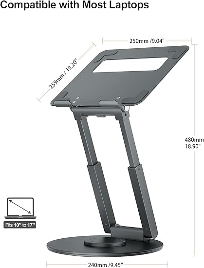 tounee Telescopic Laptop Stand for Desk with 360° Swivel Base, Sit to Stand, Height Adjustable, Portable Riser Holder for Good Posture, Compatible with MacBook Pro, All Laptops 10-17″-Gray